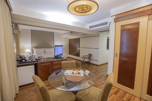 As suítes e apartamentos são amplos, equipados com todas as comodidades modernas necessárias para garantir uma experiência única. Desfrute de vistas deslumbrantes e de um ambiente acolhedor, ideal para famílias, casais ou viajantes a negócios.
