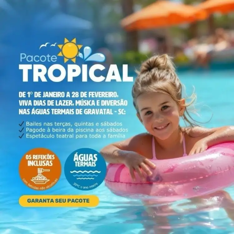 E para completar, você também poderá participar de hidroginástica na piscina e dentre outras recreações para se sentir renovado e aproveitar sua estadia no Hotel Internacional em Termas do Gravatal.