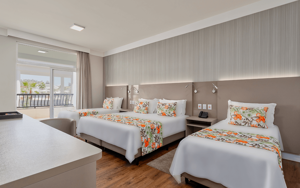O resort conta com 152 apartamentos modernos, divididos em três categorias: Superior, Premium e Superior Plus, que acomodam de casais a famílias grandes.