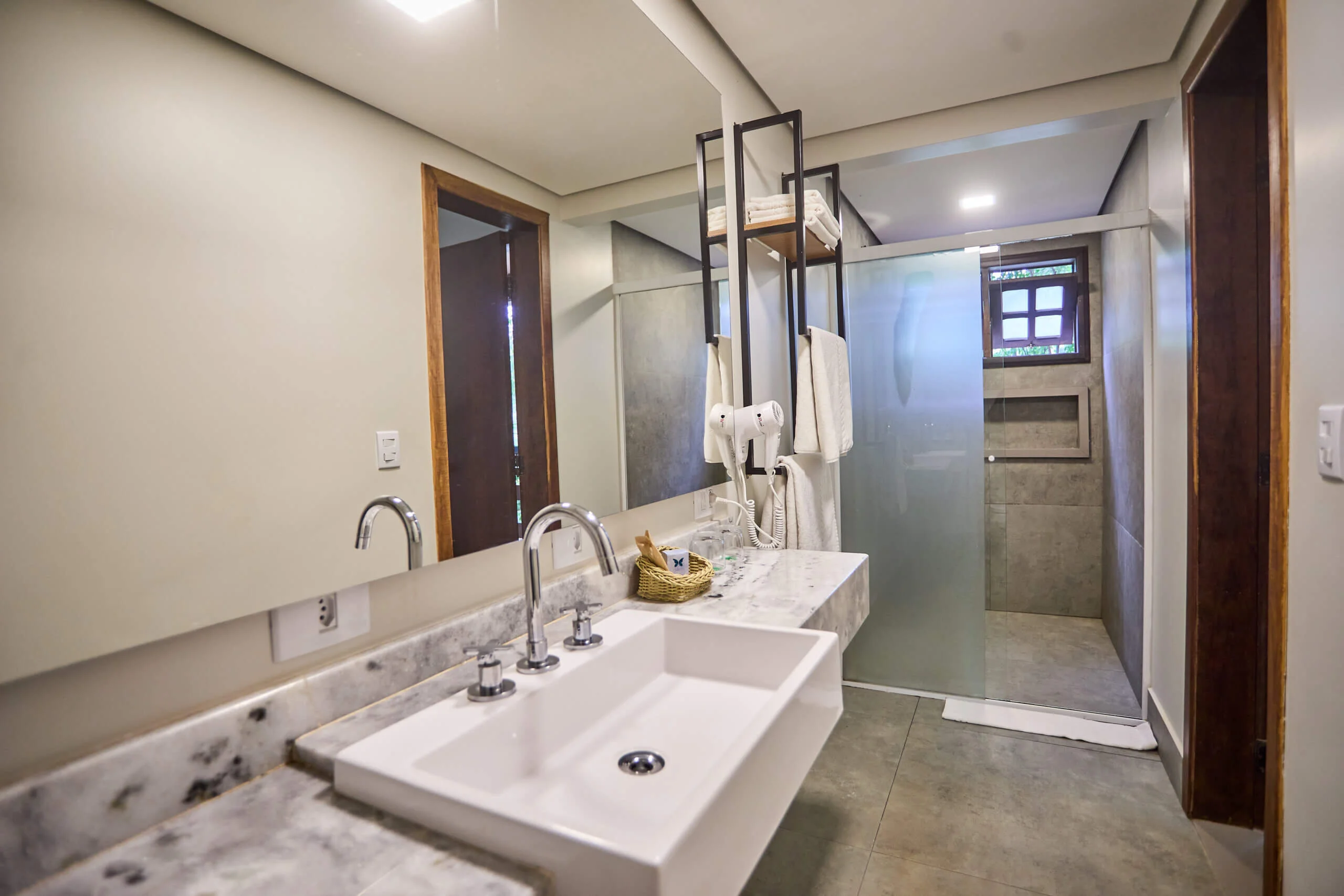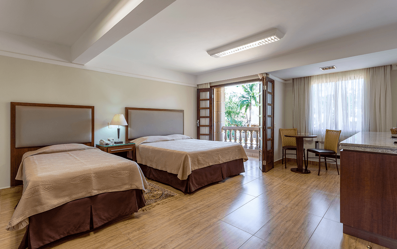 Algumas suítes oferecem banheira de hidromassagem, garantindo ainda mais relaxamento. Seja para casais, famílias ou grupos, o resort proporciona uma estadia tranquila e aconchegante, ideal para recarregar as energias.